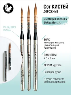 Набор дорожных кистей имитация колонка 6, 8, 10