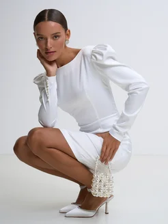 Атласное платье футляр мини