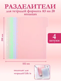Разделители страниц для тетрадей формата А5 на 20 кольцах