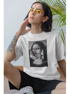 оверсайз футболка с принтом мона лиза