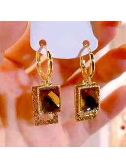 Геометрические серьги из коричневого циркония