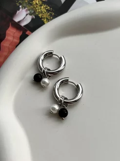 Серьги кольца конго бижутерия с агатом и жемчугом