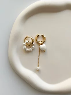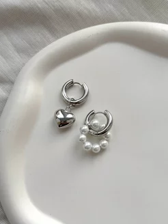 Серьги кольца конго бижутерия с жемчугом и сердцем