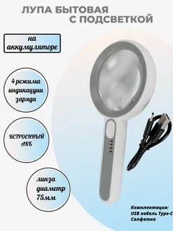 Лупа ручная с подсветкой аккумуляторная 5x 12x