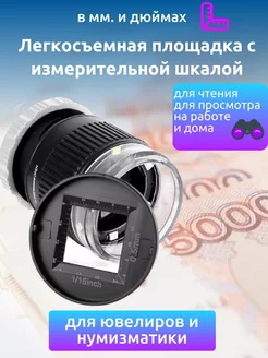 Лупа карманная складная 2.5х 45х с подсветкой LED