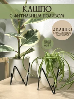 Набор кашпо с фитильным поливом на подставке 2 шт 1л