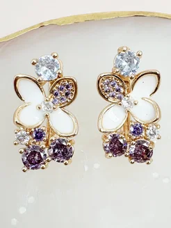 Серьги женские с эмалью крупные вечерние с камнем