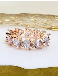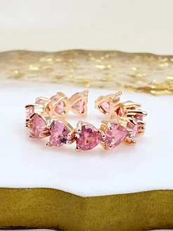 кольцо бижутерия сердечки безразмерное с розовым камнем