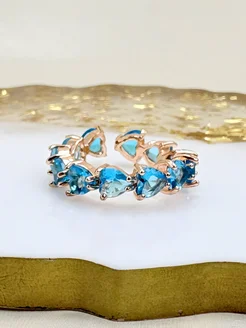 кольцо бижутерия сердечки безразмерное с голубым камнем