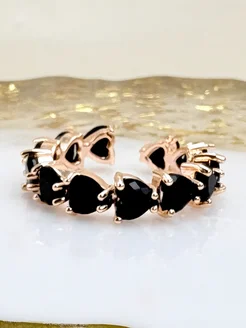 кольцо бижутерия сердечки безразмерное с черным камнем