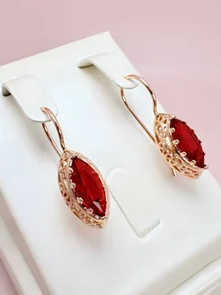 Серьги бижутерия с красным камнем маркиза
