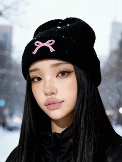 шапка y2k с бантиком вязаная k-pop