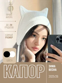 Шапка капор вязаный с ушками коточепчик