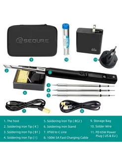 Портативный электрический USB паяльник S60P (набор 4 жала)