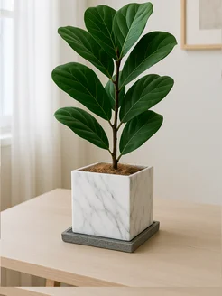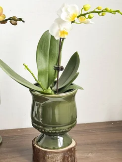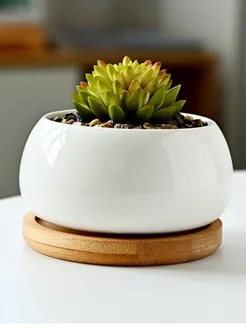 Горшок для цветов керамический с бамбуковым поддоном