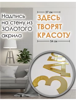 Надпись на стену "Здесь творят красоту" из золотого акрила
