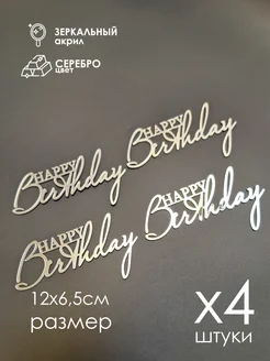 Топпер для торта Happy Birthday серебро