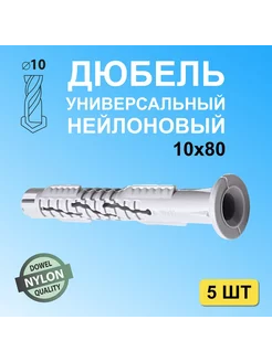 Дюбель универсальный нейлоновый 10 x 80 мм с кромкой 5шт