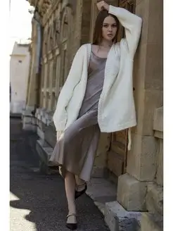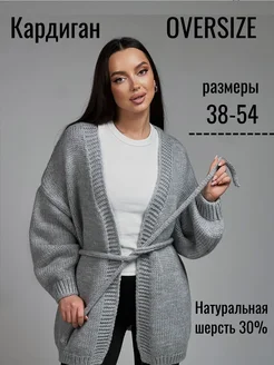 Кардиган удлиненный оверсайз вязаный теплый с поясом
