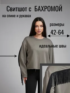 свитшот без начеса оверсайз с бахромой