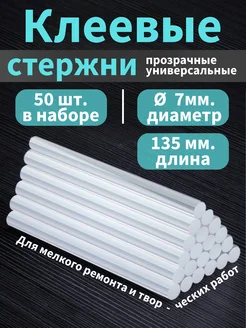Стержни для клеевого пистолета 7 мм прозрачные 50 шт