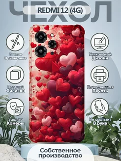 Чехол на REDMI 12 силиконовый с принтом Сердечки
