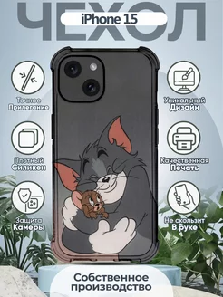 Чехол на IPHONE 15 силиконовый с принтом Том и Джерри