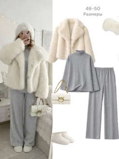 Трикотажный костюм с брюками большие размеры теплый