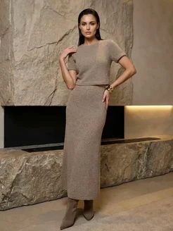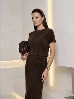 Костюм пушистый трикотажный с юбкой вязаный теплый