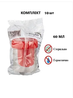 Контейнер для сбора биоматериалов со шпателем 60мл, 10 шт