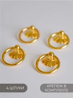 Ручка мебельная кнопка с кольцом ( цвет "Золото"), 4 шт