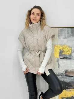 Жилетка утепленная удлиненная безрукавка без капюшоном