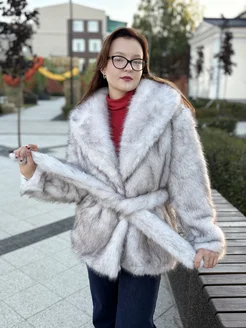 Шуба искусственная короткая с поясом экошуба зима