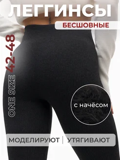 Лосины утеплённые в рубчик леггинсы с начесом бесшовные