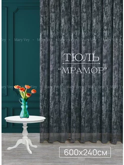 Готовый тюль мрамор 600х240 см на шторной ленте