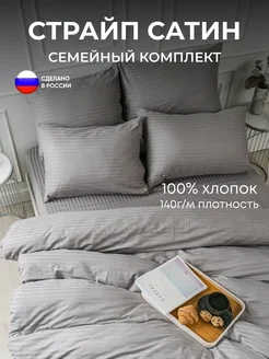 Постельное белье семейное с 2 пододеяльниками страйп сатин