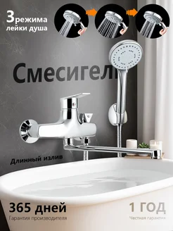 Смеситель для ванны с душем с лейкой и краном поворотный