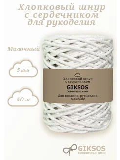 Шнур хлопковый 5мм 100м с сердечником, вязаный