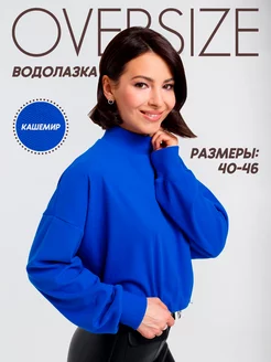 Водолазка оверсайз в рубчик укороченная с горлом синяя