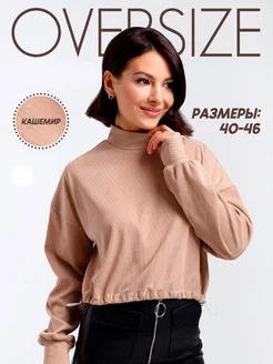 Водолазка оверсайз в рубчик с горлом укороченная бежевая