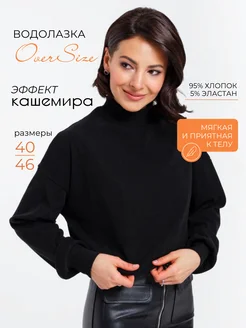 Водолазка в рубчик оверсайз укороченная черная с горлом