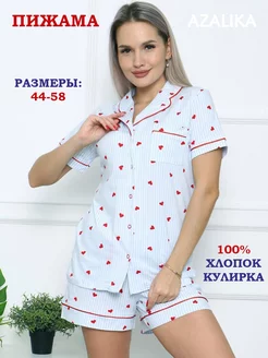 Пижама женская с шортами и рубашкой хлопок домашняя одежда