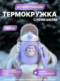 Термос детский с трубочкой и ремешком