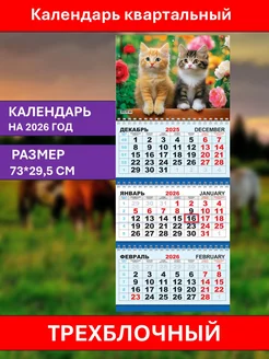 Календарь квартальный 2026 год трехблочный