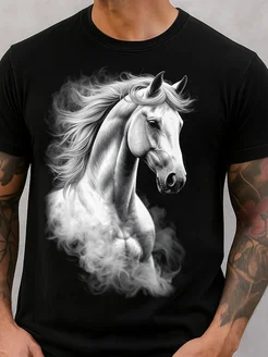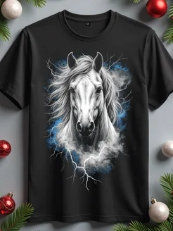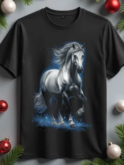 Футболка с принтом лошадь белая светящаяся