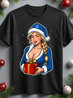 Футболка с принтом снегурочка новогодняя