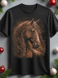 Футболка с принтом новогодней лошади светящаяся