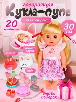 Кукольный домик с мебелью и куклами в сумочке с подсветкой
