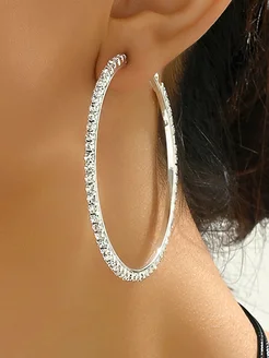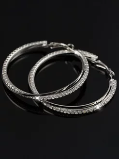 Серьги кольца - стразы блестящие кристаллы, круглые