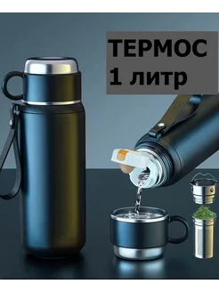 Термос 1 литр для чая металлический с кружкой